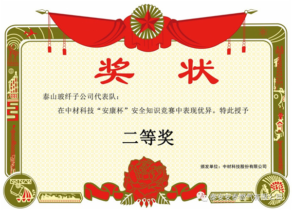 由安泰燃?xì)獍踩偙O(jiān)岳洪濤及泰山玻纖鄒城公司原料分廠廠長(zhǎng)莊波、泰山玻纖微粉事業(yè)部工藝員徐磊組成的泰山玻纖子公司隊(duì),因表現(xiàn)優(yōu)異,取得了總分第二名的好成績(jī),榮獲本次競(jìng)賽的集體二等獎(jiǎng)。