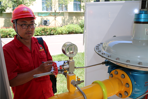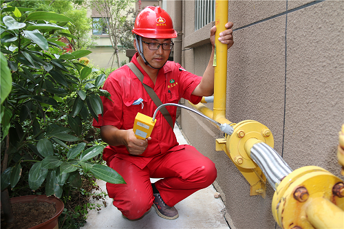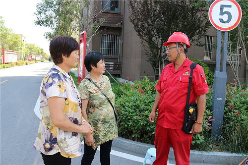 宋緒全是2007年通過競聘上崗從泰山玻纖進入安泰燃氣公司工作的,刨除在兩站的工作時間,他擁有8年的巡線經(jīng)驗。巡線工作使得他皮膚黝黑,也讓他養(yǎng)成了吃苦耐勞的精神和雷厲風行的作風。正是這樣,他成為管網(wǎng)部的一名“急先鋒”。宋緒全說,每天的工作是對公司管線進行巡檢,對沿線供氣設(shè)備設(shè)施進行查漏,發(fā)現(xiàn)管線保護范圍內(nèi)有施工跡象的,及時和施工方進行聯(lián)系并協(xié)調(diào)處理,確保管線不被施工破壞。工具包內(nèi)有檢漏儀、卷尺和拉閥門井蓋的鐵拉鉤。在這炎熱的夏天,人們空手在烈日下行走尚且汗流浹背,何況他還要隨身背著工具包。小區(qū)樓下,看到幾位剛買菜回來的老人,宋緒全上前攀談,一再叮囑用氣安全常識。隨后他又檢查小區(qū)里的調(diào)壓器、入戶管和燃氣閥門井,這是他每天都要重復的工作。