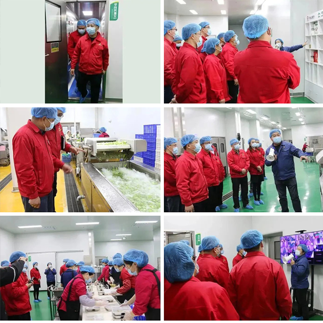 首先,一行人統(tǒng)一換上頭套、鞋套進入“風淋室”清潔,隨后在食堂工作人員的帶領下依次進入中央廚房配餐中心。參觀中大家了解到,配餐中心所有食材均遵循“食以安為天”的原則,建立了嚴格的食品安全管控體系,統(tǒng)一招標采購、統(tǒng)一管理、統(tǒng)一配制,保障了制作、配餐的可追溯性。新的中央廚房生產(chǎn)線采用多種先進生產(chǎn)設備,可實現(xiàn)原料入庫、加工、包裝、儲存、配送全程實時監(jiān)控、批批檢測,從而確保產(chǎn)品質(zhì)量和口感。全新的配餐系統(tǒng)和高標準的加工配送體系,無不體現(xiàn)出硬件上選型上的“高精尖”和服務著陸上的“軟實力”,讓大家親眼見識到食品生產(chǎn)標準化流程的同時,開闊了眼界,也從中深刻體會到“盡心盡力、盡職盡責”的深刻含義。