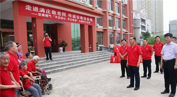 7月25日,泰安安泰燃氣有限公司開展“不忘初心送關(guān)愛 組織關(guān)懷暖人心”主題黨日活動。泰山玻纖黨委委員、副總經(jīng)理、安泰燃氣董事長趙恒剛帶領(lǐng)公司班子成員、支部委員、黨員骨干分別走進滿莊鎮(zhèn)敬老院和道朗鎮(zhèn)魚東村,以實際行動向退伍老黨員做出的貢獻表示敬意,把積極助困的國企社會責任和中華民族尊老愛老的傳統(tǒng)美德落到實處。