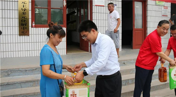 10點鐘,道朗鎮(zhèn)黨委副書記、鎮(zhèn)長李安軍等人與趙恒剛一行與共同為魚東村退伍老黨員和困難群眾送上花生油、大米等慰問品。慰問中,趙恒剛詳細詢問、了解他們生活中存在的困難和問題,并囑咐他們有困難要告訴公司,以便公司及時解決他們生活中的難處,現(xiàn)場群眾備受感動。同時,一行人走進魚東村困難群眾家中,為他們送去生活必需品和誠摯問候。
