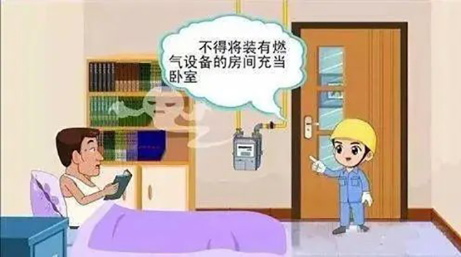 嚴(yán)禁將有燃?xì)庠O(shè)施的房間充當(dāng)臥室居住或臨時休息,因?yàn)槿绻細(xì)獗怼⑷細(xì)庠罨蛉細(xì)夤軗p壞泄漏,不易察覺,更有可能引發(fā)爆炸、火災(zāi)等危險。
