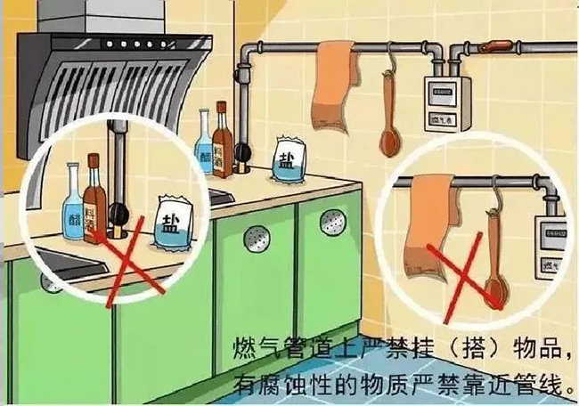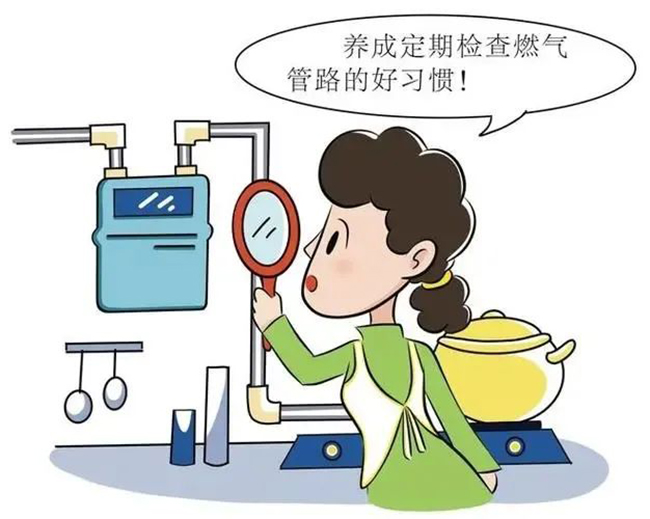 針對家中燃?xì)庠O(shè)施,要定期進(jìn)行自檢,檢查燃?xì)膺B接管接頭是否有松動,連接管是否存在老化、損壞現(xiàn)象,如出現(xiàn)以上情況,及時更換燃?xì)膺B接管(需更換金屬波紋管),確保日常用氣安全。天然氣本身是一種無色無味的氣體,經(jīng)過加臭處理后,氣體具有臭雞蛋味,一般人可以靠嗅覺識別。如果聞到這類氣味,可使用洗潔精水涂抹管道各接口及連接處進(jìn)行自檢,如有泡泡連續(xù)冒出,立即開窗通風(fēng),并關(guān)閉表前閥門,不得開關(guān)任何電器,并到室外撥打燃?xì)夤緢缶娫挕?br />