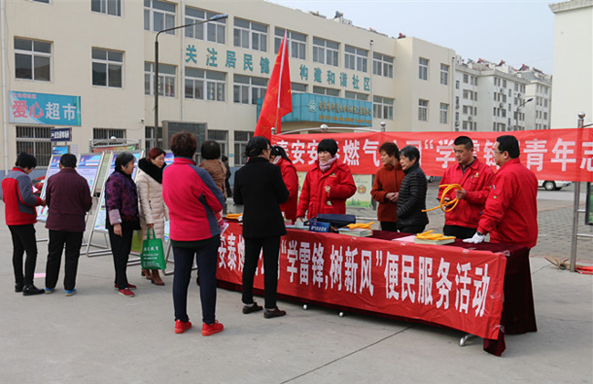 為全面貫徹黨的十九大精神,深入弘揚(yáng)社會(huì)主義核心價(jià)值觀以及無(wú)私奉獻(xiàn)的雷鋒精神,3月5日-6日安泰燃?xì)夤緦W(xué)雷鋒志愿者服務(wù)隊(duì)走進(jìn)社區(qū),開展了以“學(xué)雷鋒 樹新風(fēng)”為主題的便民服務(wù)活動(dòng)。