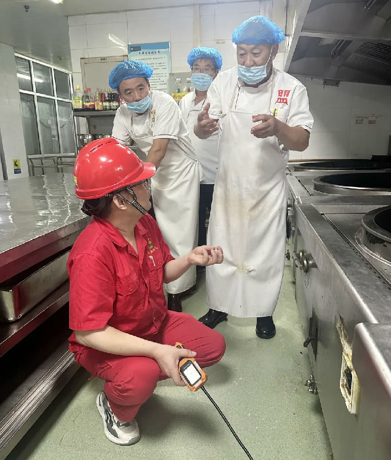 安全專項(xiàng)檢查中,公司專業(yè)技術(shù)人員對(duì)學(xué)校食堂內(nèi)的燃?xì)夤艿?、閥門、燃?xì)庠罹?、燃?xì)庑孤﹫?bào)警裝置等設(shè)施設(shè)備進(jìn)行了全面細(xì)致的排查,重點(diǎn)檢查了燃?xì)夤艿朗欠翊嬖诶匣?、破損、私拉亂接,燃?xì)馄骶呤欠穹习踩珮?biāo)準(zhǔn),報(bào)警裝置是否正常運(yùn)行等情況。對(duì)于發(fā)現(xiàn)的隱患,當(dāng)場立即落實(shí)整改,確保防患于未“燃”。